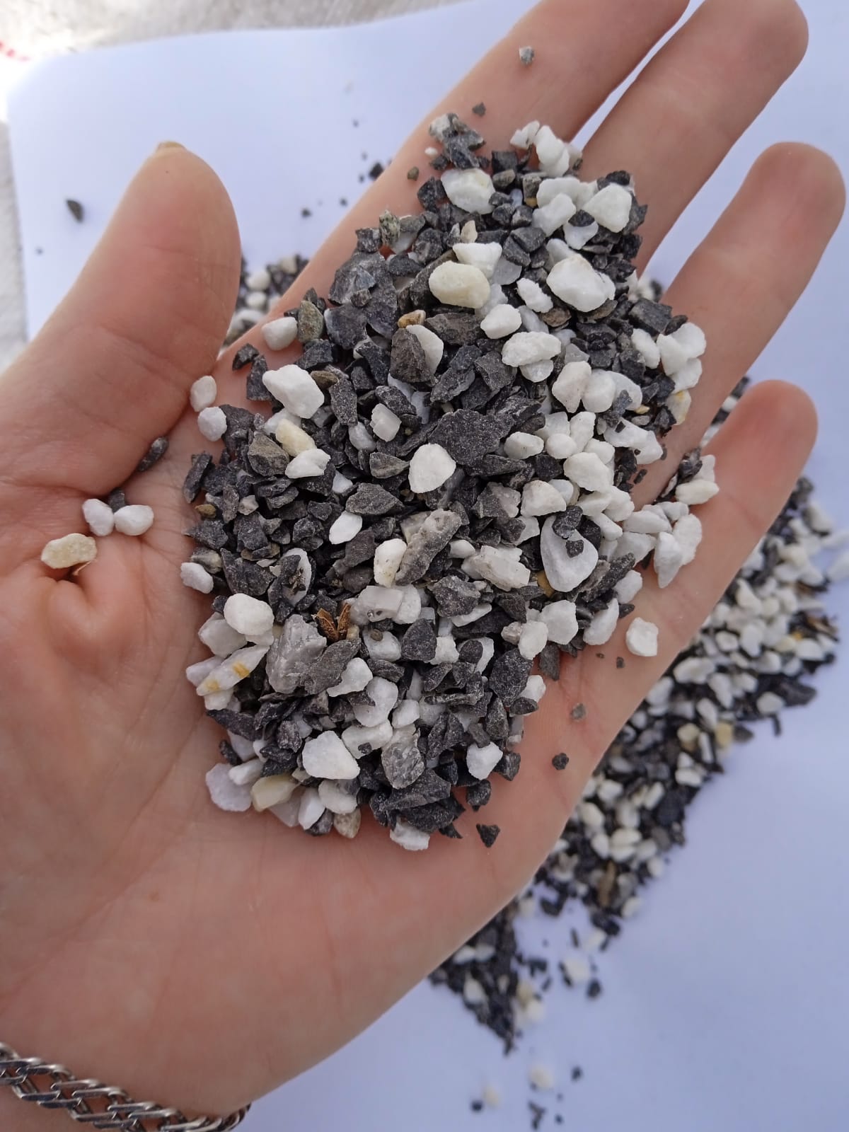Мраморная крошка (щебень галтованный микс:: белый-черный) фр.5-10 мм