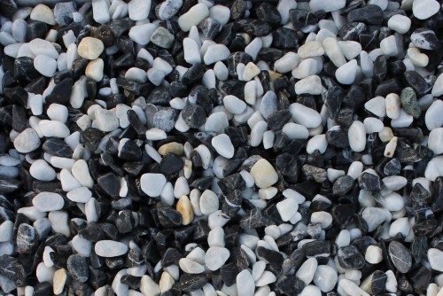Галтовка щебня мраморного черная и белая галька микс