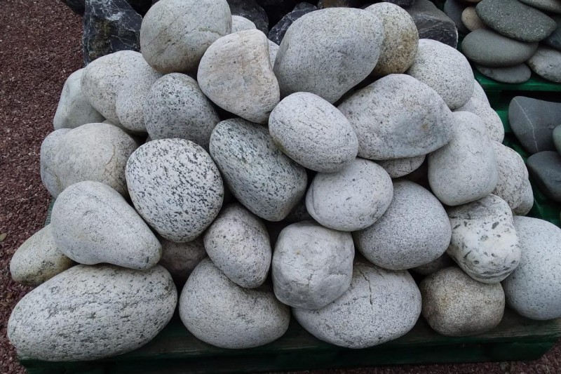 Kamenclub.ru: бело-серый валунчик фр.100-300 мм. купить в Сургуте - заказать природный камень по низким ценам оптом с доставкой от производителя - kamenclub.ru